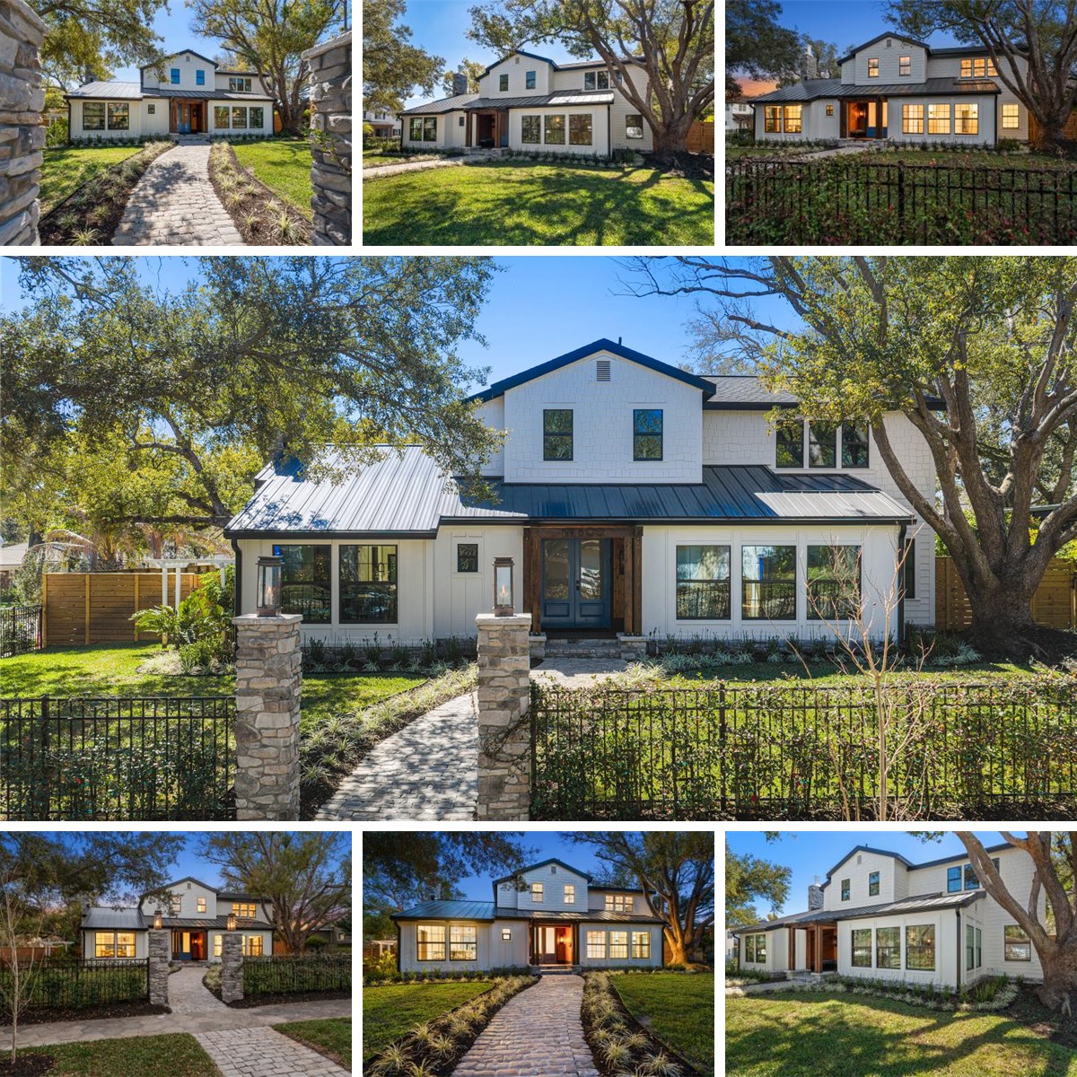 Originally built in the Rio Vista subdivision and moved to its present location by horse in 1934, this remarkable residence carries a century of stories while feeling wholly renewed for contemporary living. The approach sets the tone: a stately stone walkway framed by gas-lit stone pillars leads to an inviting covered porch of cedar tongue & groove walls and mahogany flooring, where warm gas lanterns flicker beside the double-door entry.